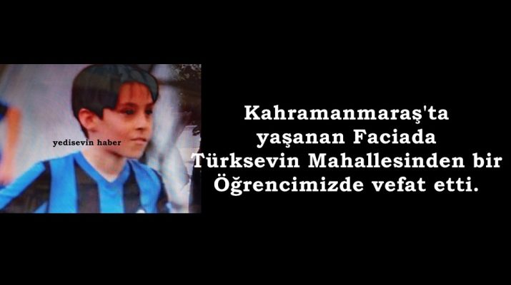 Kahramanmaraş’ta dün Aysel Çalık Ortaokulunda yaşanan silahlı faciada Türksevin Mahallesi nüfusuna kayıtlı bir Öğrencimizinde vefat ettiği bilgisi geldi. Haber Afşin’i yasa boğdu. Aysel Çalık